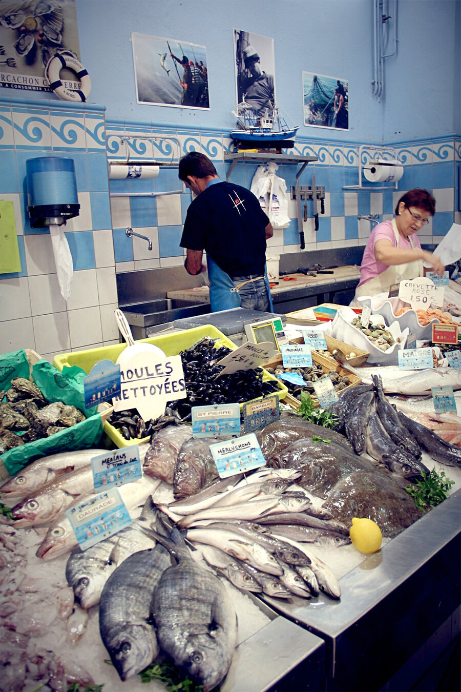 Was den Fisch betrifft gab es viele heimische Sorten wie Roter undWeißer Thunfisch, Sardellen, Seezunge, aber auch viele importierteArten, die die Nachfrage bedienen müssen und nicht mehr in lokalenGewässern gefischt werden dürfen.
